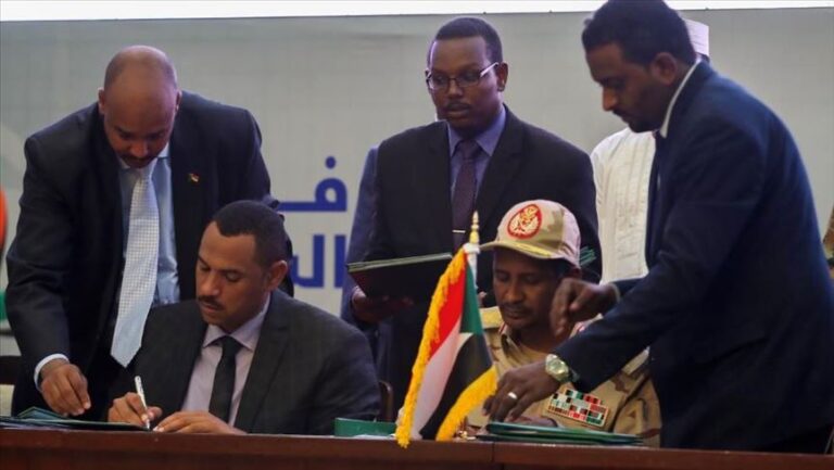 بعد حوالي تسعة أشهر من بدء المظاهرات المناهضة لحكم البشير والذي استمر قرابة ٣٠ عاماً، وبعد أن تم الإطاحة بالبشير والقبض عليه في شهر أبريل الماضي، تم الإعلان علي الإتفاق علي وثيقة الإعلان الدستوري الجديد لتبدأ فترة إنتقالية طويلة مدتها ثلاث سنوات يتقاسم فيها السلطة المجلس العسكري وزعماء المعارضة وتنتهي بالإنتخابات عام ٢٠٢٢. ويتضمن الإتفاق ثلاثة هياكل لحكم البلاد خلال الفترة الإنتقالية ومدتها ٣٩ شهراً هم المجلس السيادي ويمثل رأس الدولة ورمز سيادتها ووحدتها، ومجلس الوزراء يمثل السلطة التنفيذية العليا للدولة، والمجلس التشريعي ويمتلك سلطة التشريع والرقابة علي الجهاز التنفيذي.